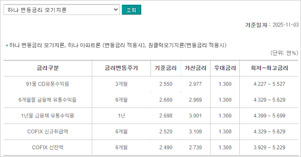 하나은행 주택담보대출 금리, 이자, 이율은 다음과 같습니다. 하나은행 주택담보대출 금리는 대출기간 40년, 주택구입자금용도, 비거치식 분할상환방식, 하나은행 신용등급 3등급인 분에게 적용되는 하나은행 주택담보대출 금리입니다.