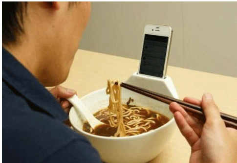스마트폰 거치대 역할을 할 수 있는 홈을 만들어 라면이나 밥을 먹으면서..
