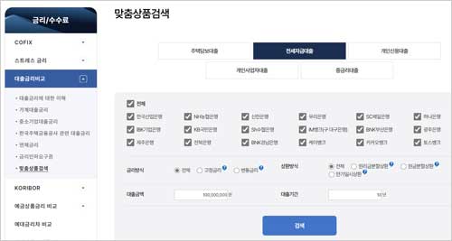 케이뱅크 전세자금대출 금리비교 사이트 은행연합회 소비자포털 홈페이지 서비스 이용 방법 및 조회방법 확인하기