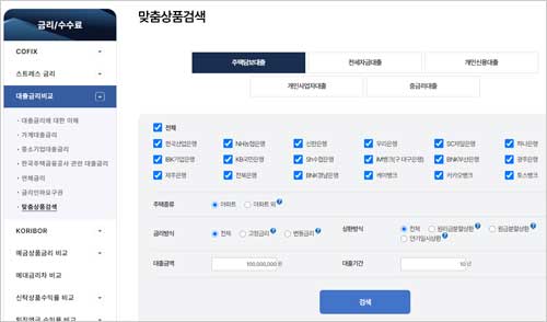 - 고정금리(혼합형 포함): 대출 기간 전체 또는 일정 기간(예: 5년) 동안 금리가 고정되는 상품을 비교합니다.