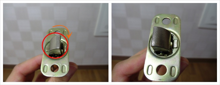 문의 잠금장치를 안쪽으로 오게 하려면.. 몸체를 180도 돌려야 하므로..