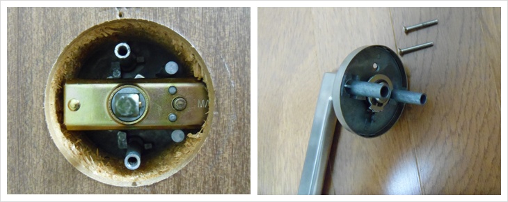 방 안쪽에서 본 손잡이 내부모습과 떼어 낸 손잡이 부품!